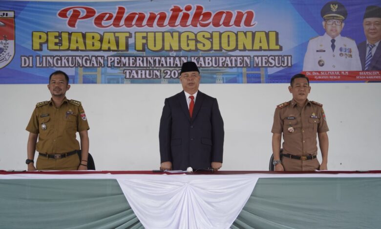 Mesuji,(Suara trans.com) -Penjabat Bupati Mesuji dalam hal ini diwakili Sekretaris Daerah Kabupaten Mesuji Syamsudin, S.Sos. melantik Pejabat Fungsional di Lingkup Pemerintah Kabupaten Mesuji Tahun 2024 di Balai Desa Simpang Pematang, Kecamatan Simpang Pematang, Selasa (26/03/2024).