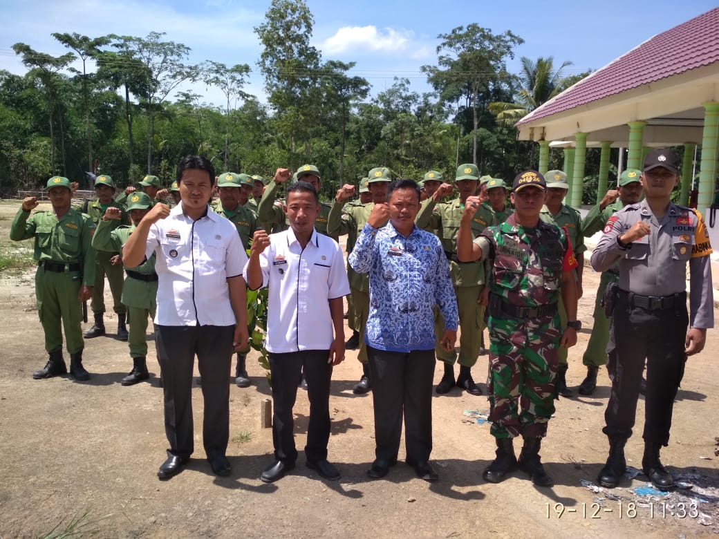 Koptu Junaedi, Babinsa Koramil 426-02/Menggala, Kodim 0426 Tulang Bawang, Kampung Tri Jaya, Kecamatan Penawar Tama, Kabupaten Tulang Bawang, memberikan pelatihan peningkatan kapasitas Linmas di Kampung Tri Jaya bersama Babinkamtibmas, Rabu (18/12/2019).