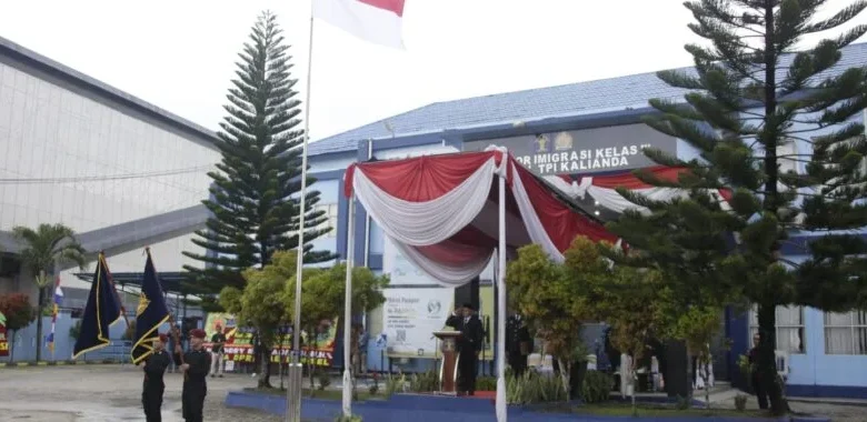 Upacara peringatan Hari Bhakti Imigrasi ke-74 tahun 2024 mengusung tema “Transformasi Peran Keimigrasian Melalui Strategi Digitalisasi”.