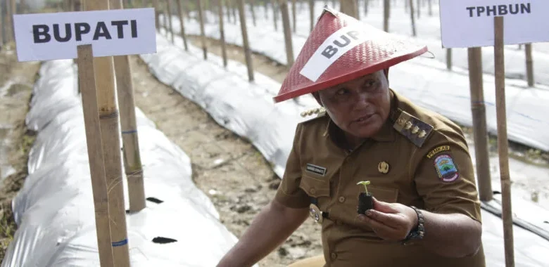 Bupati Nanang Ermanto Tanam Pohon Melon di Desa Trimomukti Kecamatan Candipuro