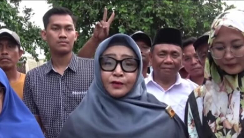 Istri Calon Bupati Tanggamus Drs.H. Saleh Asnawi MA. MH Terharu Dengan Meneteskan Air Mata di Sambut Oleh Warga