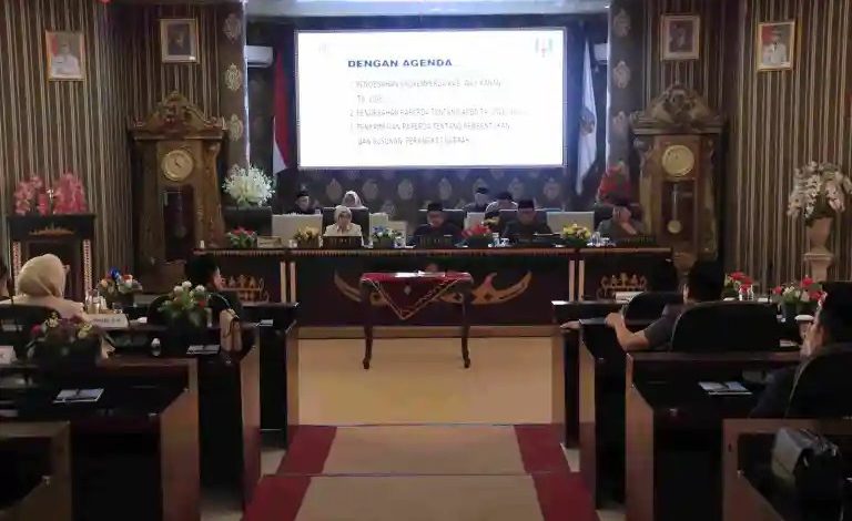 Way Kanan – (Suara Trans.Co.id) Bupati Ayu Asalasiyah, S.Ked., menghadiri Rapat Paripurna Pengesahan Program Pembentukan Peraturan Daerah (Propemperda) Kabupaten Way Kanan Tahun Anggaran 2026 sekaligus Rapat Paripurna Pengesahan Rancangan Peraturan Daerah (Raperda) tentang APBD Kabupaten Way Kanan Tahun Anggaran 2026. Kegiatan tersebut berlangsung di Ruang Buway Bahuga DPRD Kabupaten Way Kanan, Senin (24/11/2025).