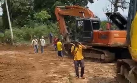 Alat berat yang di kerahkan sebanyak 7 unit untuk mempercepat perbaikan jalan pasca bencana Tanah Longsor, salah satunya Eskapator dan Buldozer