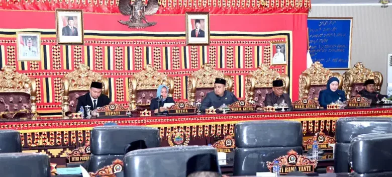 Rapat paripurna yang digelar di ruang sidang utama DPRD Kabupaten Lampung Selatan, dipimpin oleh Ketua DPRD Erma Yusneli didampingi Wakil Ketua I Merik Havit, Wakil Ketua II Benny Raharjo, dan Wakil Ketua III Bela Jayanti serta dihadiri 38 anggota anggota dewan.