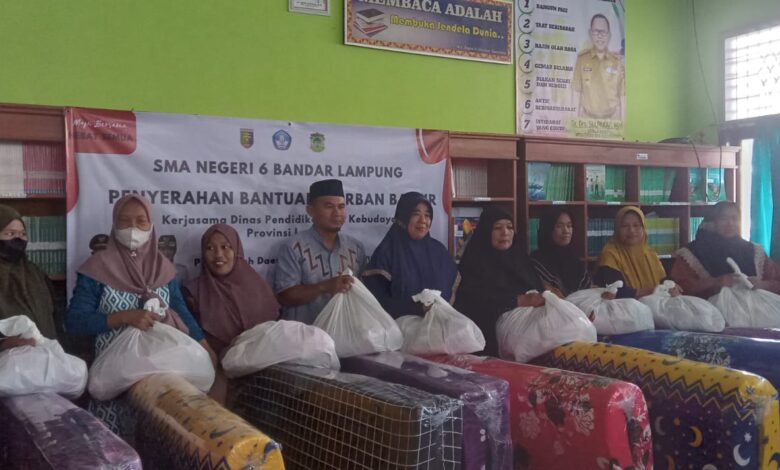 Penyerahan Bantuan sosial yang diserahkan oleh Pemerintah Provinsi Lampung untuk kecamatan panjang di pusatkan di SMAN 6 Bandar Lampung .