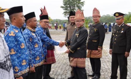 Penjabat Bupati Mesuji Dr. Drs. Sulpakar, M.M. melaksanakan Upacara Peringatan Hari Pendidikan Nasional Tahun 2024 dan Hari Otonomi Daerah Ke 28 di Lapangan Pemda Mesuji, Kamis (02/05/2024).