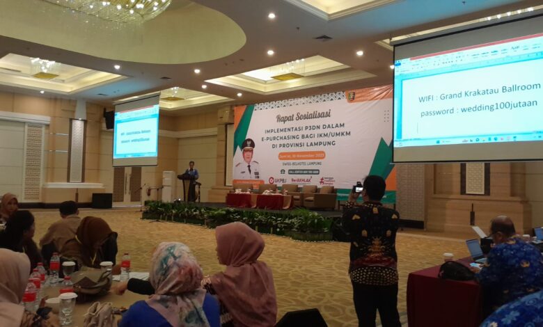 Bandar Lampung,(Suaratrans.com) -Pemerintah provinsi Lampung melalui Dinas Biro Pengadaan Barang dan Jasa menggelar Rapat sosialisasi Implementasi Program Peningkatan Penggunaan Produk Dalam Negeri (P3DN) dalam E-PURCHASING bagi IKM/UMKM di Provinsi Lampung,yang di gelar di ballroom Swissbell hotel,Bandar Lampung.10/11/2023.