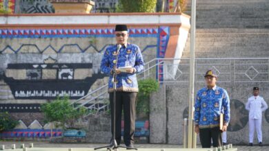 Dalam Rangka Memperingati Hari Koperasi dan Hari Anak Nasional Pemerintah adakan Upacara yang di Pimpin SEKDA