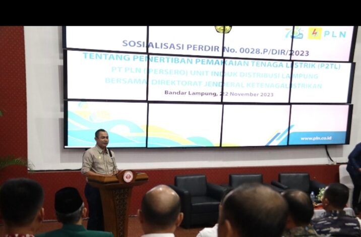 Bandar Lampung,(Suaratrans.com) -22 November 2023 Direktorat Jenderal Ketenagalistrikan (DJK) bersama PT PLN (Persero) Unit Induk Distribusi (UID) Lampung melakukan Sosialiasi Pelaksanaan Penertiban Pemakaian Tenaga Listrik (P2TL). Hal itu dimaksudkan sebagai Upaya meningkatkan keselamatan kelistrikan serta memaksimalkan kualitas pelayanan dalam penyediaan tenaga listrik kepada masyarakat.